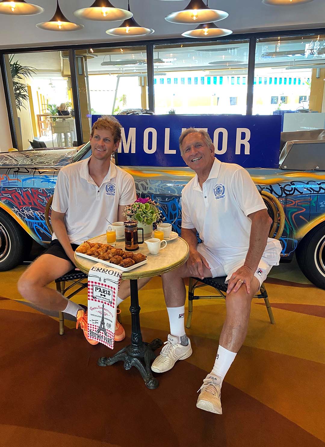 Bonjour Tennis Fantasies was created by Steve and Guillaume — two generations united by a lifelong passion for playing tennis and travel.